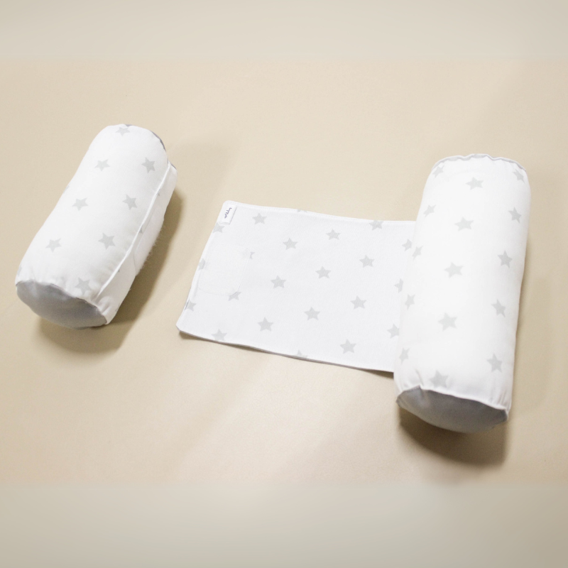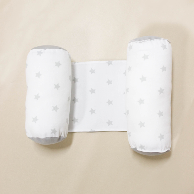 Dos almohadas cilíndricas unidas, que generan un espacio en el medio para colocar al bebé.