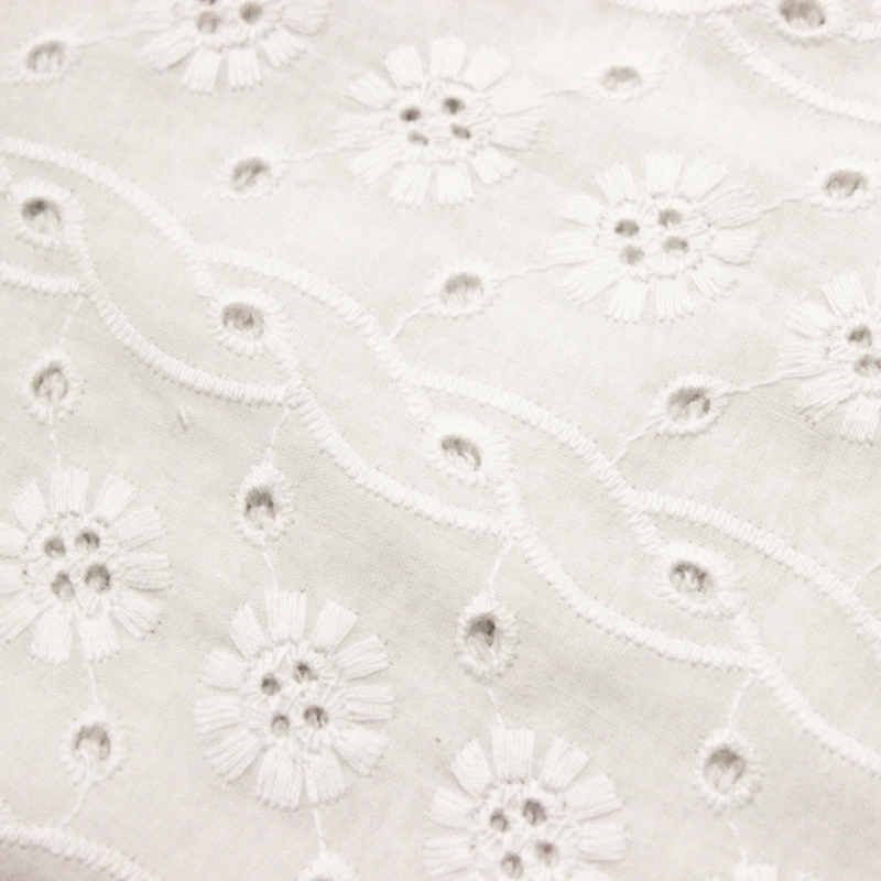 Detalle de tela broderie. Delicada y elegante, se caracteriza por su bordado, romántico y sofisticado.