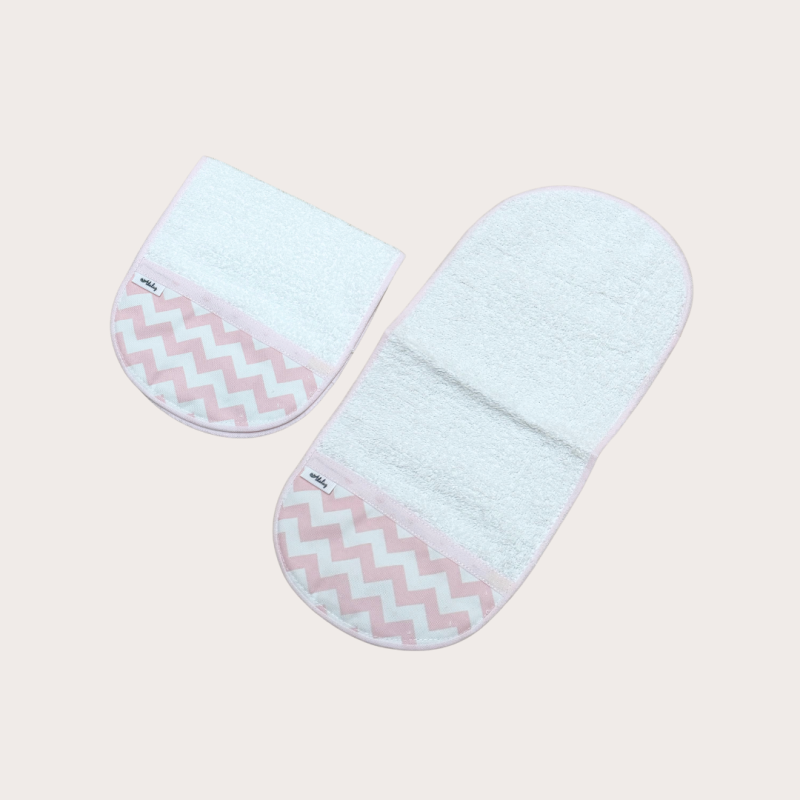 De tela de toalla con detalle en otra tela decorativa.