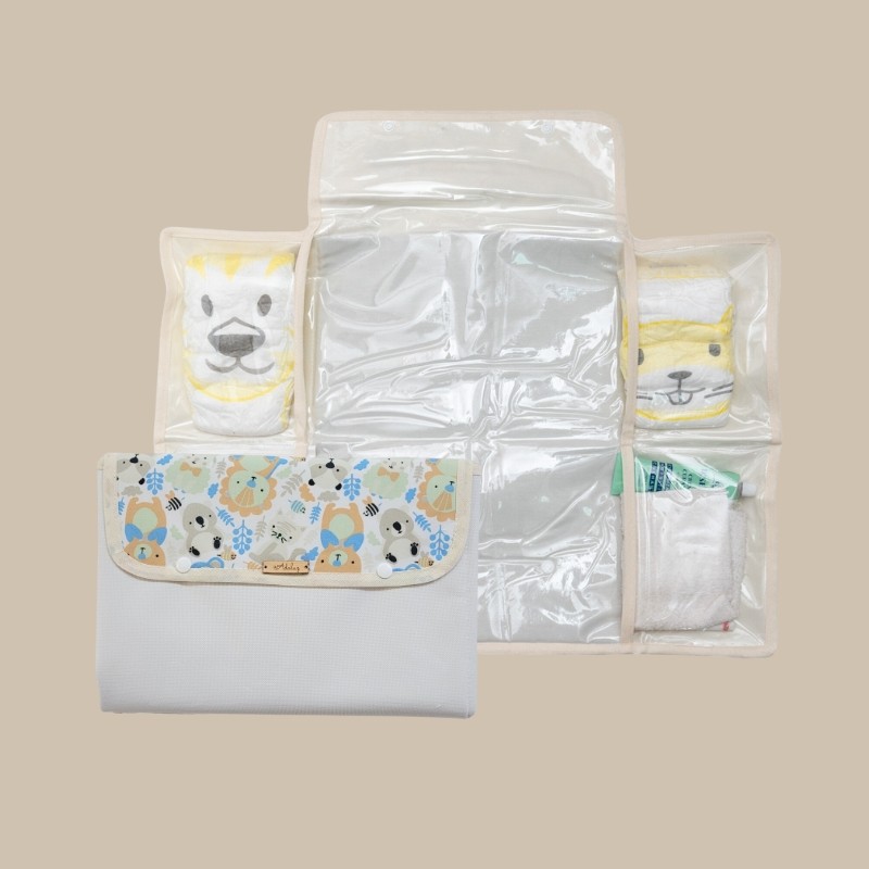Cambiador con bolsillos Beige con Detalle de Animales de la Selva