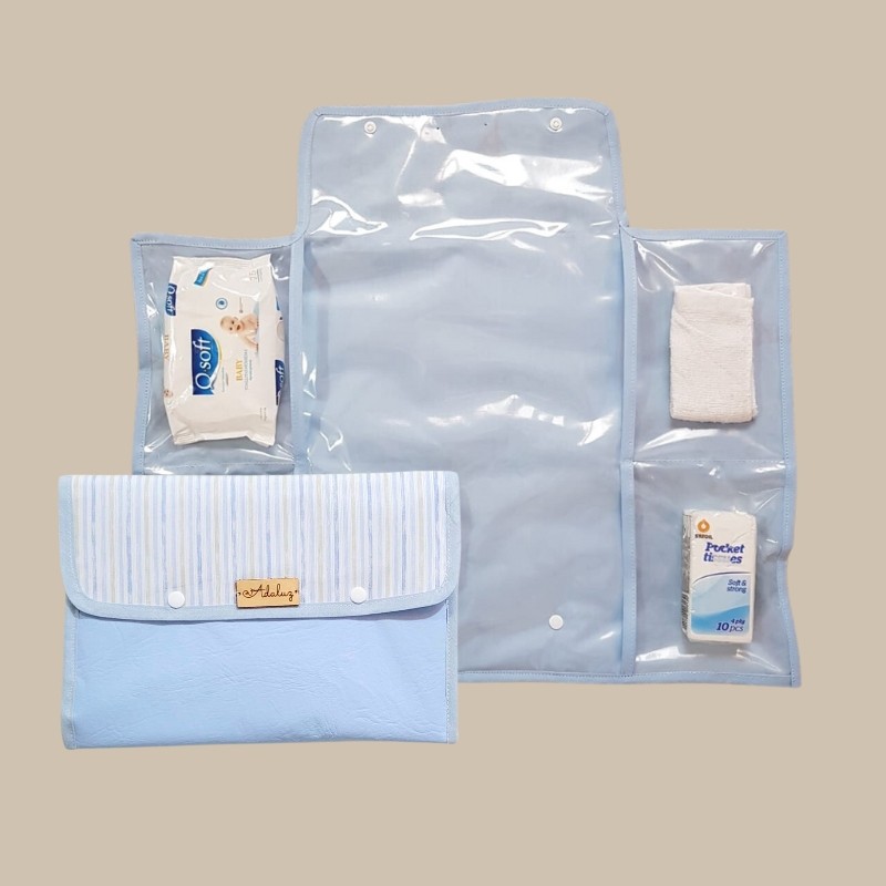 Cambiador con bolsillos Celeste con Detalles de Lineas