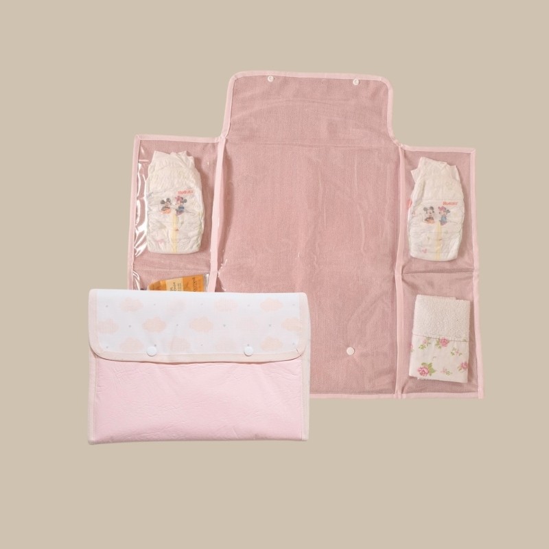 Cambiador con bolsillos Rosa con Detalle de Nubes