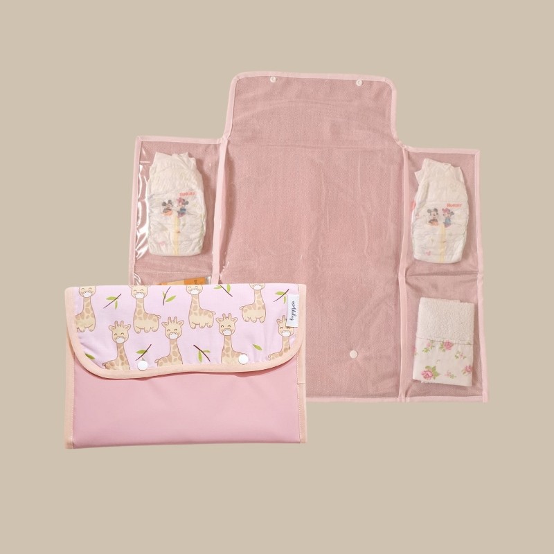 Cambiador con bolsillos Rosa con Jirafitas