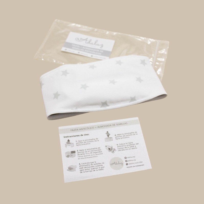 La solución perfecta para aliviar los cólicos de tu bebé. Su diseño cómodo y suave proporciona alivio instantáneo, brindando tranquilidad a tu pequeño. Incluye: fajita ajustable, almohadita térmica de semillas, manual de instruciones y una bolsita hermética para proteger a la almohadita de la humedad.