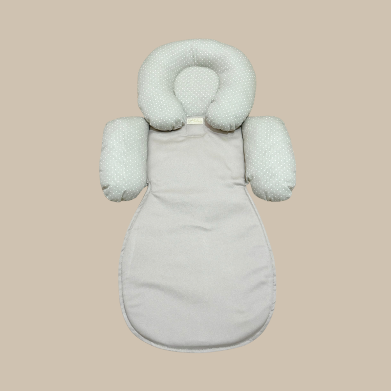 - La cabeza actúa como almohada de recién nacido y los brazos laterales acolchados ayudan a mantener la posición del bebé.